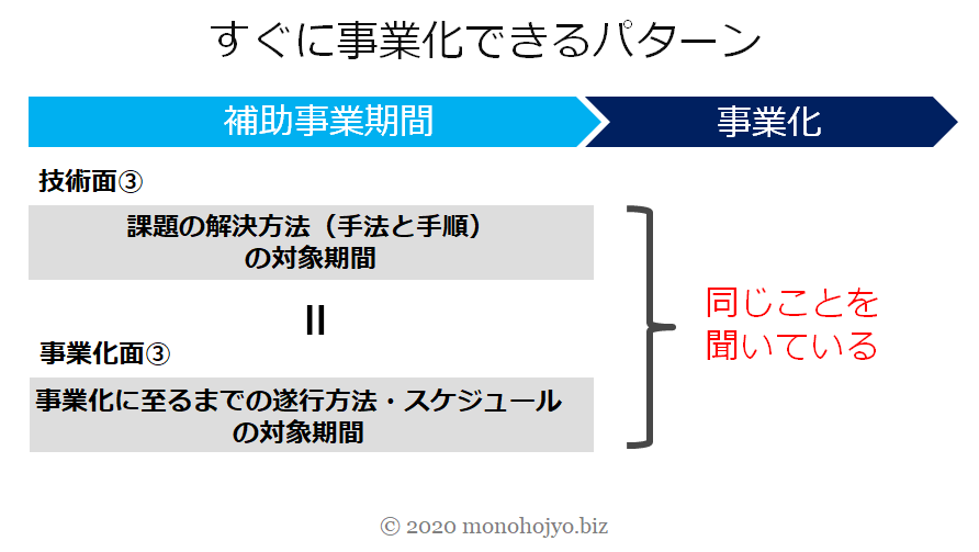 先に、「事業化面③事業化に至るまでの方法・スケジュールとかぶっている」と記載しましたが、その理由を以下の構図で説明します。