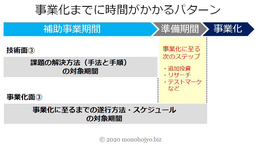一方、補助事業期間を終了した後、事業化のための積み残しを解消するために、次のステップに進む場合もありますよね。こういったケースです。