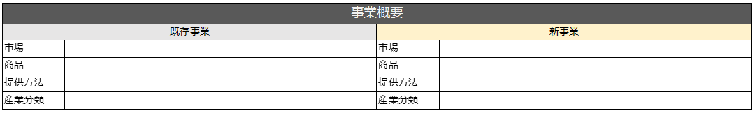 新分野展開・業種転換・業態転換であれば、新商品・新市場が必要ですし、業態転換であれば新商品・新提供方法が必要です。ここは10P~15Pで示す本文内で明確に記載しておいたほうがよいでしょう。