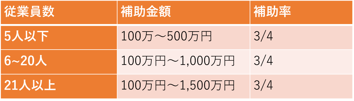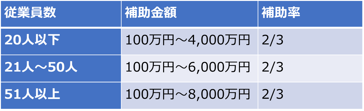 一方で、従業員数の少ない事業者さんは最大で4,000万円と、従業員数別の補助額の設定へ変更となりました。