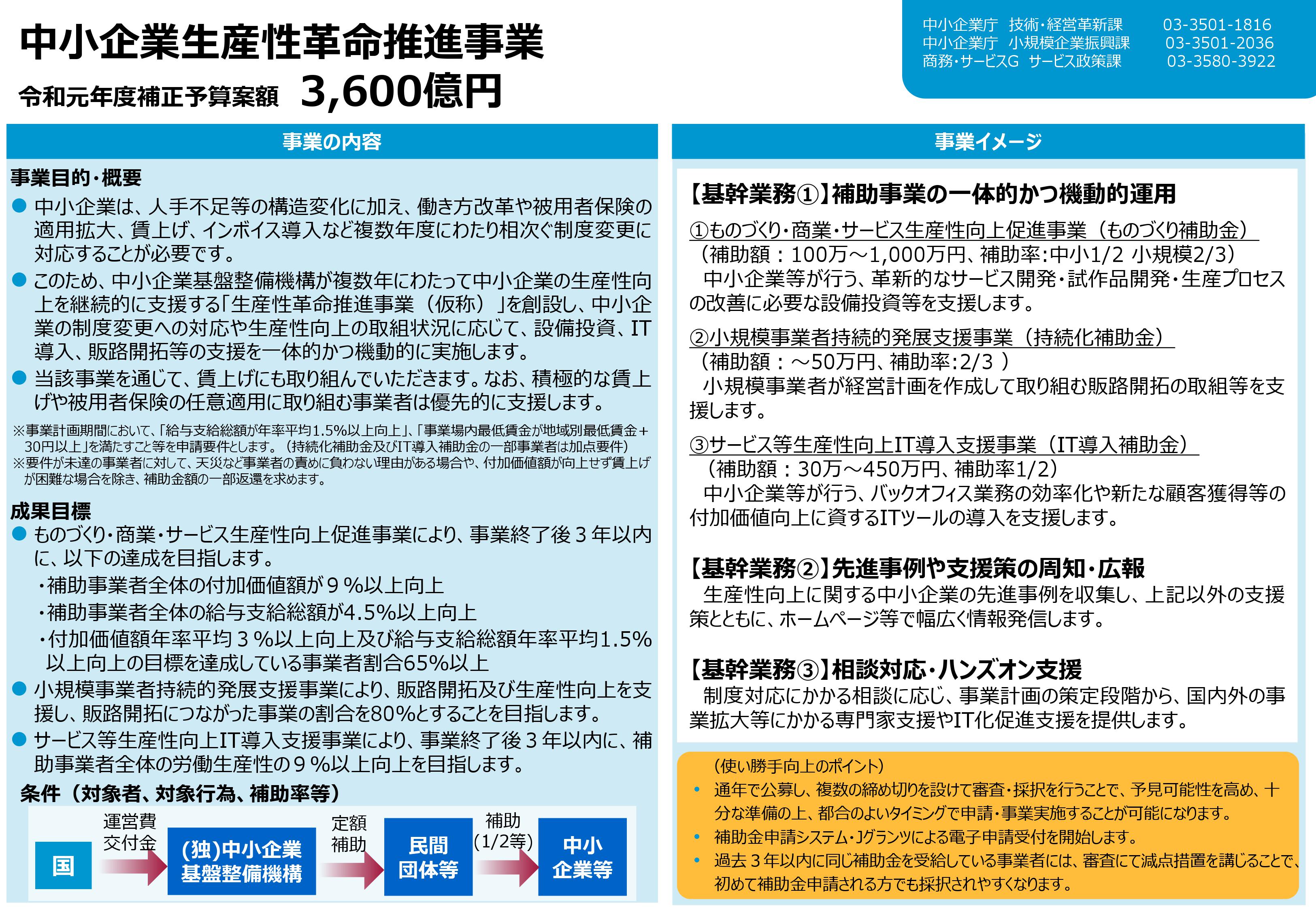 今回、経済産業省では「中小企業生産性革命事業」として、3か年で3,600億円の予算を計上しています。